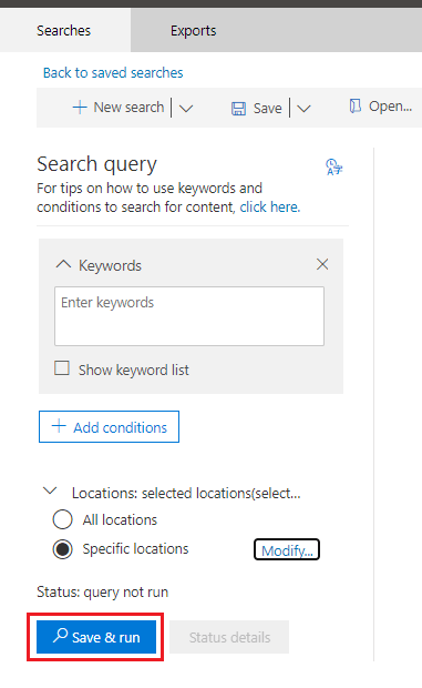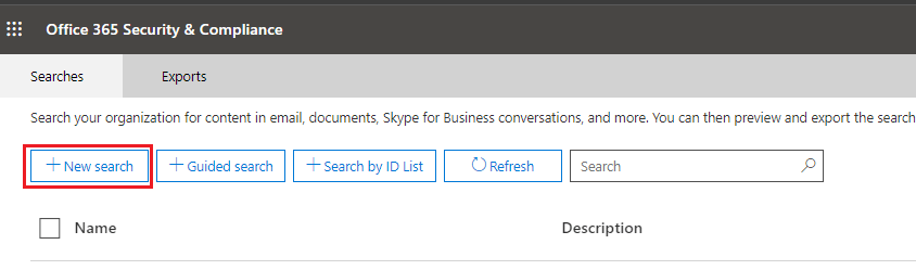 In the Security and compliance center (https://protection.office.com), under “Search” click on “Content Search”